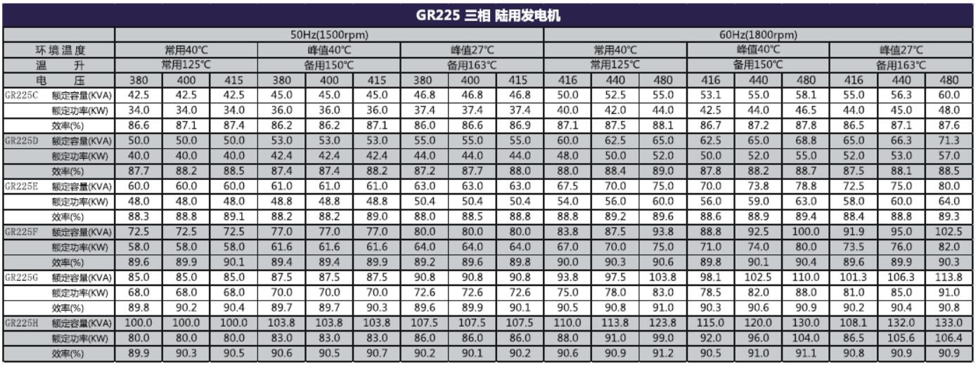 GR225 三相陆用发电机