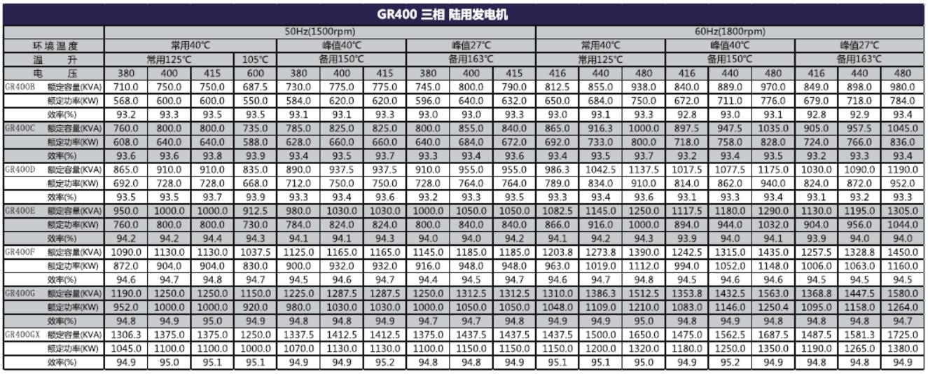 注:所有陆用额定值是基于海拔1000米内,环境温度为40°C。