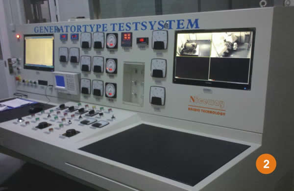 自主研发投入的大型反馈式电机负载测试中心,以行业高测试标准测试,全面记录发电机各项运行指标。为了严格控制关键数据--主定线圈温升,每台发电机带负载测试,保证产品在苛刻要求下的100%的出厂合格率